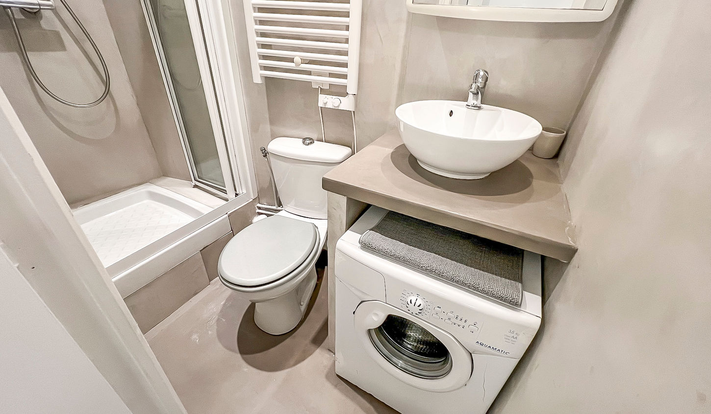 This little 15 m² studio is located on Rue Véron, 75018 Paris. The studio is composed of 1 room with a sofa bed, a office desk and a kitchenette. This furnished studio rental can accommodate up to 1 person and perfect for a student.
